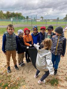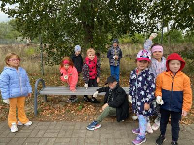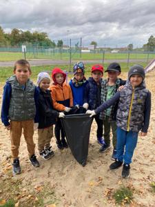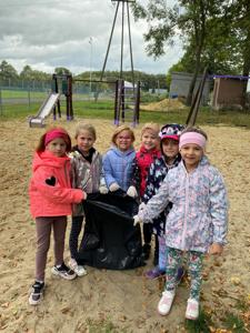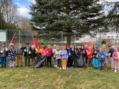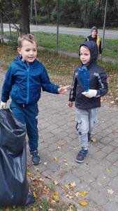 Dzieci sprzątały tereny zielone w pobliżu szkoły oraz place zabaw, ale także wyrabiali w sobie nawyk troski o środowisko naturalne w swojej najbliższej okolicy.