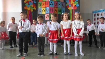 Z okazji dnia Babci i Dziadka nasze przedszkolaki pod czujnym okiem wychowawczyń przygotowały przedstawienia w formie muzyczno- słownych wystąpień. W przepięknej scenografii wnuczęta wspaniale wystąpiły przed bliskimi- recytowały wiersze przeplatane wzruszającym śpiewem. Mali artyści z przejęciem prezentowali swoje umiejętności. Oczywiście nie zabrakło też własnoręcznie zrobionych upominków, które dzieci wręczyły swoim ukochanym Babciom i Dziadkom. Następnie przedszkolaki zaprosiły babcie i dziadków na wspólny taniec oraz do wzięcia udziału w różnych konkurencjach aby w szczególny sposób okazać swoim bliskim szacunek i po raz kolejny podziękować za miłość, cierpliwość i zrozumienie. To były naprawdę wyjątkowe uroczystości, pełne uśmiechu, radości i dumy. Szczęśliwe i rozpromienione twarze babć i dziadków dały wyraz tego, jak ważne są takie spotkania i chwile spędzone wspólnie z wnukami.
