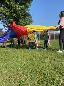 Dzień Przedszkolaka upłynął pod znakiem dużej ilości zabawy i ruchu a zwieńczony został pamiątkowymi zdjęciami w fotobudce i słodkim poczęstunkiem.