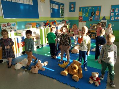 Przedszkolaki tego dnia poznały historię święta, bawiły się przy piosenkach „ Jadą , jadą misie”, „Pluszowy Miś”. Dla dzieci przygotowano wiele atrakcji: zabawy ruchowe, plastyczne, konkursy, quizy, zgadywanki. Ten dzień w przedszkolu pełen był uśmiechu, radości oraz wspólnej zabawy. Mamy nadzieję, że to wielkie misiowe święto zostanie w naszych wspomnieniach na długi czas.