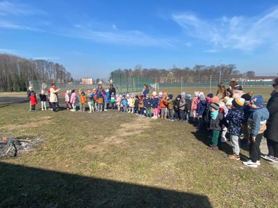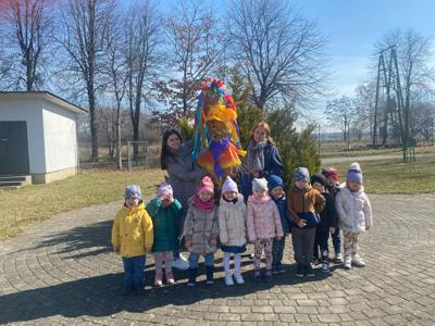 21 marca w naszym przedszkolu był wyjątkowy dzień, ponieważ witaliśmy WIOSNĘ! 🌷Wiosenne obchody rozpoczęły się od wspólnego tworzenia marzanny z kolorowych materiałów. Dzieci wykazały się wielkim zaangażowaniem, pomagając tworzyć piękną postać, która symbolizowała zimę. Następnie, pełni radości, wszystkie dzieci z naszego przedszkola wzięły udział w obrzędzie ,,pożegnania zimy- powitania wiosny”, gdzie na zewnątrz odbyła się tradycyjna ceremonia spalenia marzanny, aby pożegnać chłodne dni i przywitać cieplejszą porę roku. Był to dzień pełen zabawy, śmiechu oraz pozytywnej energii! Dzieci miały okazję nie tylko uczestniczyć w tradycjach związanych z nadejściem wiosny, ale również rozwijać swoje zdolności manualne, artystyczne i społeczne.