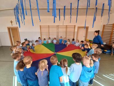 11 kwietnia w ramach obchodów Światowego Miesiąca Świadomości Autyzmu, nasze przedszkole wzięło udział w wyjątkowym wydarzeniu – Niebieskich Igrzyskach. To nie tylko zawody sportowe, ale przede wszystkim okazja do budowania wspólnoty, zrozumienia i wsparcia dla osób ze spektrum autyzmu. W tym dniu na dzieci czekało wiele atrakcji: tory przeszkód, zabawy z piłkami, hula-hop, przeciąganie liny, ćwiczenia koordynacyjne i wspólne tańce. Dzieci brały udział w rywalizacji, ale bez presji – liczyła się przede wszystkim dobra zabawa, wzajemna pomoc i uśmiech na twarzy. Uczestnicy pokazali, jak wiele można osiągnąć , gdy działamy razem. Dla wielu była to nie tylko zabawa, ale też ważna lekcja empatii i zrozumienia.