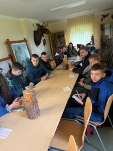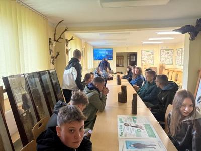 Pogoda tego dnia niestety nie dopisała – silny wiatr i deszcz uniemożliwiły przeprowadzenie zajęć terenowych. Mimo to spotkanie nie straciło na wartości. Zamiast spaceru po lesie, uczniowie uczestniczyli w prelekcji prowadzonej przez pracownicę nadleśnictwa, która w ciekawy sposób opowiadała o codziennych obowiązkach leśników, ochronie przyrody i znaczeniu zrównoważonej gospodarki leśnej. Uczniowie mieli również okazję obejrzeć filmy edukacyjne pokazujące życie lasu oraz nowoczesne technologie wykorzystywane w pracy leśników.