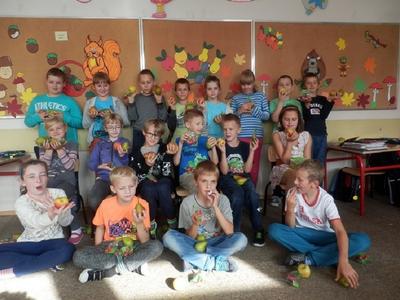 Podczas apelu dzieci zaprezentowały występ artystyczny, na który złożyły się piosenki i wiersze dotyczące zdrowego odżywiania oraz krótka inscenizacja pt: „ Bajka o witaminach zawartych w owocach i warzywach”.