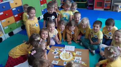 W tym dniu Przedszkole zamieniło się w żółt6ą, magiczną pełną szczęścia krainę. Wszyscy byli witani w progach przedszkola z uśmiechem na twarzy. Panie przedszkolanki rozdawały każdemu na dobry początek dnia naklejki z uśmiechniętą buźką i życzyły „Miłego dnia”.