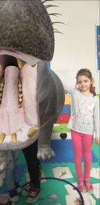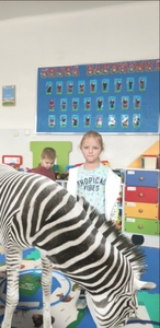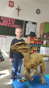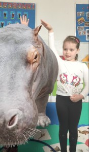 W minionym tygodniu, realizując blok tematyczny „Poznajemy zwierzęta”, dzieci z grupy „Biedronki” zdobyły wiadomości na temat środowiska życia, wyglądu, sposobu odżywiania i poruszania zwierząt leśnych, hodowlanych i egzotycznych. Dowiedziały się, co to jest dżungla i sawanna oraz jakie zwierzęta tam mieszkają. Dzięki technologii cyfrowej dzieci mogły spotkać zwierzęta egzotyczne w naszym przedszkolnym ogrodzie, zobaczyły jakie są ich rzeczywiste rozmiary, jakie wydają odgłosy. Przypomnieliśmy sobie też wiadomości o dinozaurach i oczywiście zrobiliśmy z nimi pamiątkowe zdjęcia.