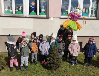Przyjście nowej pory roku – wiosny jest doskonałą okazją do tego, by uzmysłowić dzieciom, jak wielkie bogactwo niesie ze sobą budząca się do życia przyroda. W naszym przedszkolu przygotowania do pożegnania zimy i powitania wiosny zaczęły się kilka dni wcześniej. Zmieniła się dekoracja przedszkola z zimowej na wiosenną. Dzieci uczyły się wierszyków i piosenek związanych z tematyka wiosenną, wykonywały również prace plastyczne, dotyczące pierwszych zwiastunów wiosny. Każda grupa wraz z opiekunem wykonała również Marzannę, symbol odchodzącej wiosny. 22 marca przedszkolaki dumnie prezentowały swoje Marzanny spacerując wokół przedszkola. Aby tradycji stało się zadość po przemarszu Marzanna została uroczyście pożegnana – przy śpiewie wiosennych piosenek, wierszyków i głośnych okrzyków. Mamy nadzieję, że wiosna niebawem do nas zawita!