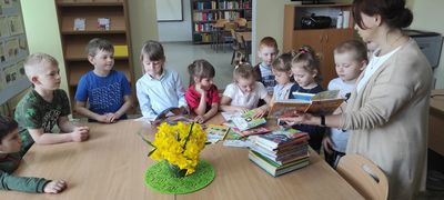 W minionym tygodniu dzieci z grupy przedszkolnej Muchomorki dwukrotnie gościły w bibliotece szkolnej. Na pierwszym spotkaniu pani Ania zaprezentowała dzieciom teatrzyk obrazkowy Kamishibai pt. „Kicia Kocia”. Dzieci dowiedziały się na czym polega teatr Kamishibai – jest to tradycyjna japońska sztuka opowiadania historii za pomocą ilustracji wykonanych na kartonowych planszach, wsuwanych do małej, płaskiej, drewnianej, otwartej częściowo skrzynki, pełniącej rolę sceny. Podczas kolejnej wizyty dzieci poznały bliżej bibliotekę oraz czytelnię. Pani Ania bardzo ciekawie opowiadała o książkach, o księgozbiorze znajdującym się w naszej bibliotece, o tym jak obchodzić się z książkami, a przede wszystkim o tym, jak ważne jest czytanie książek. Dzieci mogły samodzielnie wybrać sobie pierwszą książkę, a następnie wypożyczyć ją do domu. Otrzymały również pamiątkową zakładkę do książki. Obie wizyty w bibliotece były bardzo udane. Muchomorki z radością przynoszą przeczytane książki i ochoczo wypożyczają kolejne.