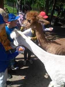 Dnia 31.05.2021r dzieci z oddziału przedszkolnego 0A, 0B z okazji Dnia Dziecka były na wycieczce w gospodarstwie agroturystycznym „Projekt Alpaka” w Garbatce Letnisko. Przedszkolaki podziwiały alpaki, kozy, króliki, papugi i kury o charakterystycznym upierzeniu. Jednak główną uwagę zwróciły na alpaki. Z nimi spędziły najwięcej czasu. Głaskały je, przytulały i karmiły marchewką, która jest dla nich najlepszym przysmakiem. Kolejną atrakcją, którą cieszyły się dzieci był konkurs sprawnościowy „Poszukiwanie marchewek”. Dzieci miały możliwość obcowania z przyrodą. Biegały po ogrodzie i zbierały marchewki dla alpak. Zabawy w wiejskim stylu połączone z przekazaniem wiedzy na temat hodowli alpak wzbudziły zachwyt i zainteresowanie wśród wszystkich dzieci. Dzięki urokowi alpak i pomysłowości właścicielki zwierząt przedszkolaki były zachwycone atmosferą rozwijania kontaktu ze zwierzętami . Ten dzień na pewno zapadnie na długo w ich pamięci.