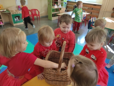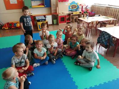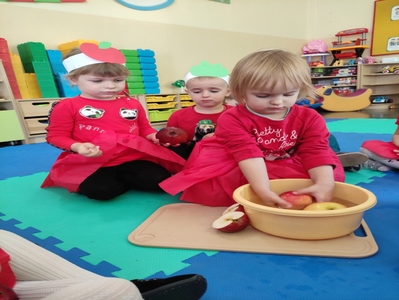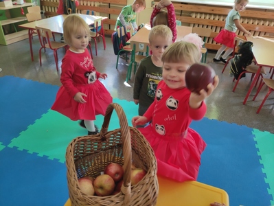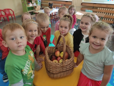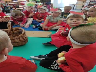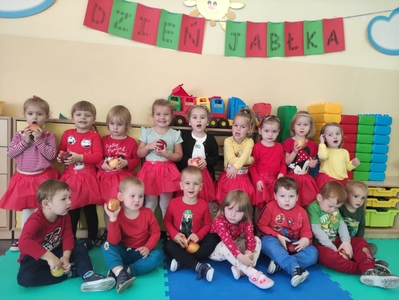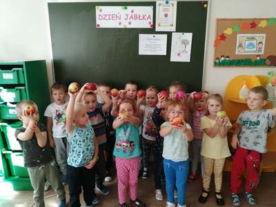 Dnia 28 września 2021r . dzieci z oddziałów przedszkolnych świętowały Dzień Jabłka. Celem zajęć i zabawy było zachęcanie ich do spożywania owoców, a w szczególności jabłek i to pod różnymi postaciami z powodu jego walorów zdrowotnych i odżywczych. Dzieci poszerzały swoją wiedzę o jabłkach. Zdobywały wiadomości na temat potraw i przetworów z jabłek. Dzieci rozpoznawały drzewa owocowe oraz rozwiązywały zagadki o jabłku i innych owocach. Były również okazje do wykonania zadań matematycznych typu przeliczanie jabłek, porównywanie wielkości. Przedszkolaki wykonały bardzo ciekawe prace plastyczne : jabłko malowane farbami, wydzieranka z kolorowego papieru. To był bardzo ciekawy dzień dla przedszkolaków.