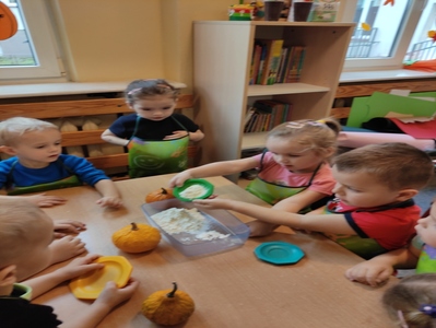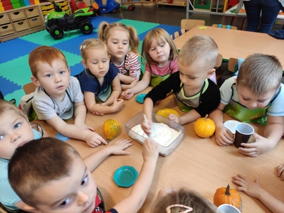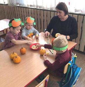 Na pamiątkę dzieci otrzymały pestki dyni do ususzenia i zasadzenia na wiosnę. Mamy nadzieję, że przedszkolaki będą obserwować jak dynie wzrastają i w przyszłym roku do przedszkola przyniosą własne dynie. Ten dzień był pełen wrażeń i radości.
