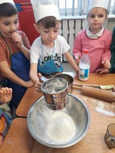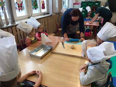 Nasze przedszkole w bieżącym roku szkolnym rozpoczęło realizację innowacji pedagogicznej „Kuchcikowa matematyka”. W ramach tej innowacji zorganizujemy zajęcia kulinarne, w trakcie których dzieci będą kształcić swoje praktyczne umiejętności. Udział w zajęciach pozwoli dzieciom rozwinąć zainteresowania kulinarne, nauczy organizacji pracy w kuchni, zdrowego odżywiania oraz zachowania higieny podczas przyrządzania posiłków.