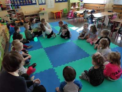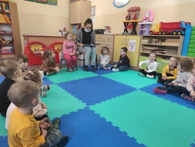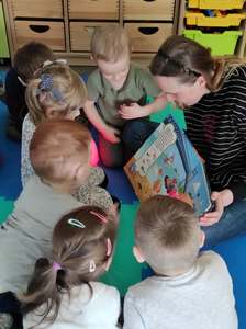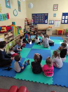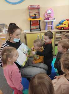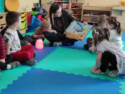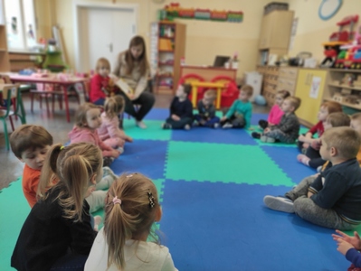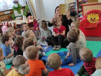 Dzieci otrzymały w tym roku misia - lampkę, któremu nadały imię Bruno. Miś "zamieszkał" w kąciku czytelniczym, a w weekendy odbywa czytelniczą podróż do domów przedszkolaków. Do naszego projektu aktywnie włączyli się rodzice, którzy przychodzą do przedszkola, aby przeczytać przedszkolakom ich ulubioną bajkę.