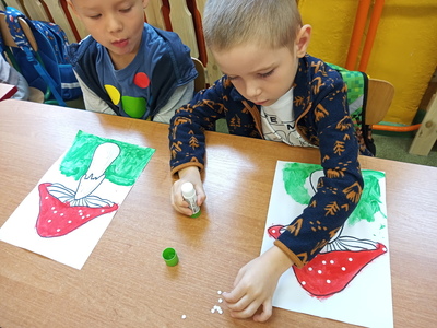 Tego dnia również dostrzegaliśmy kropki tam, gdzie wcześniej nikt na nie nie zwracał uwagi. Okazało się, że kropki towarzyszą nam w naszym codziennym życiu: mają je biedronki, z kropki można utworzyć słońce, bombkę choinkową, kolorową kulę, piłkę czy co tylko sobie wymyślimy.