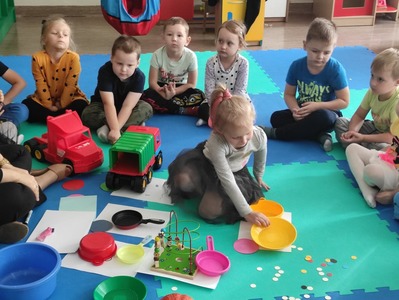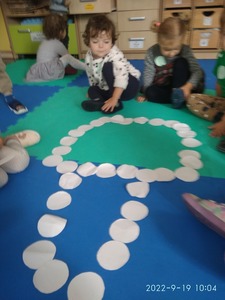 Wspólnie z dziećmi bawiliśmy się przy piosence o kropce i braliśmy udział w zabawie z kropkami. Było kolorowo, „kropkowo” i radośnie.