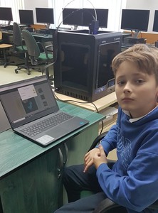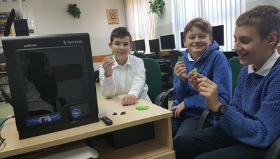 Na zajęciach dodatkowych w klasach 5 i 6 uczniowie studiowali obsługę drukarki 3D. Skorzystali z bazy gotowych modeli. Pierwszym przedmiotem, jaki wydrukowali był breloczek