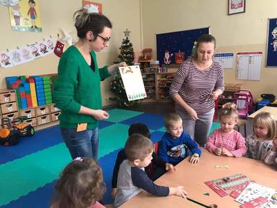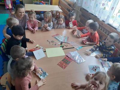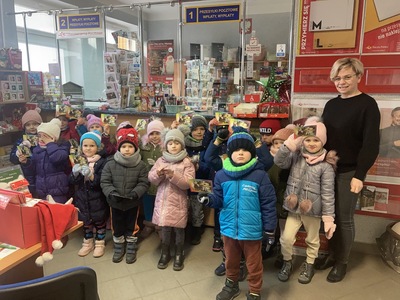 Nieodzownym symbolem Świat Bożego Narodzenia są kartki świąteczne wysyłane do krewnych i przyjaciół. Kartki, szczególnie wykonane samodzielnie, sprawiają radość wykonawcom a obdarowanym dostarczają wielu wzruszeń. Przedszkolaki samodzielnie wykonały kartki świąteczne dla swoich Dziadków, a następnie udały się na pocztę i wyrzuciły do skrzynki pocztowej.