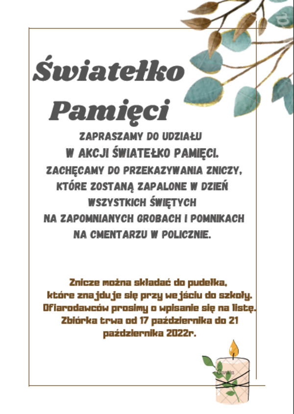 ŚWIATEŁKO PAMIĘCI Zobacz również ZOSTAŃ WOLONTARIUSZEM ŚWIATEŁKO PAMIĘCI KULINARNE PONIEDZIAŁKI 1 LISTOPADA PACZKA NA KRESY
