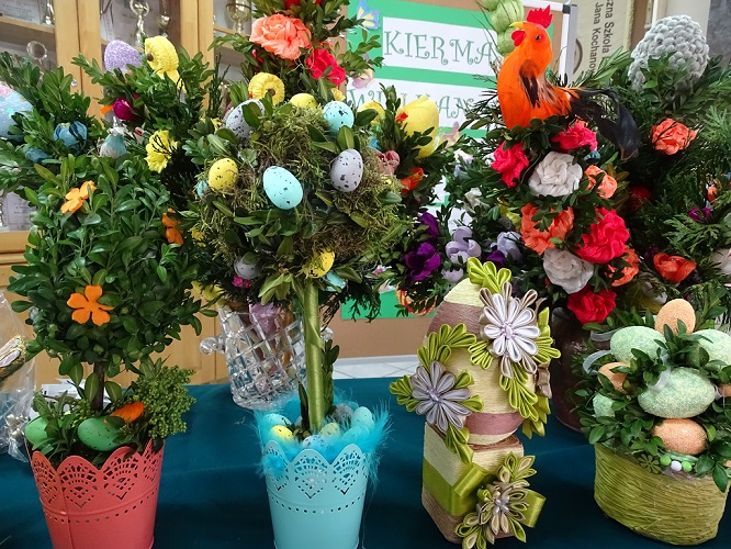 W dniach 6-10 kwietnia odbywał się w naszej szkole już po raz kolejny z inicjatywy Samorządów Uczniowskich Kiermasz Wielkanocny. Było świątecznie, kolorowo i wesoło. Podczas kiermaszu można było podziwiać i kupić wielkanocne cudeńka wykonane własnoręcznie przez uczniów, rodziców i nauczycieli. Każdy mógł znaleźć coś dla siebie, a było wszystko co kojarzy się nam z nadchodzącymi świętami: palmy, pisanki, baranki, zajączki, koszyczki itp.