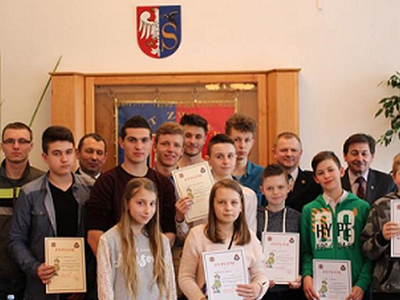 31 marca 2017 r. w siedzibie Starostwa Powiatowego w Zwoleniu odbyły się XIX eliminacje powiatowe Ogólnopolskiego Turnieju Wiedzy Pożarniczej “Młodzież Zapobiega Pożarom”. Naszą szkołę godnie reprezentowali: Magda Miękus z klasy VI (I grupa wiekowa) oraz Łukasz Orłowski (II grupa wiekowa). Uczniowie na początku turnieju rozwiązywali test, a następnie wyłonieni finaliści odpowiadali na pytania ustne przed komisją konkursową. W kategorii gimnazjum trzecie miejsce na podium wywalczył Łukasz. Wszyscy uczestnicy turnieju uhonorowani zostali dyplomami oraz wspaniałymi nagrodami rzeczowymi. (zdjęcia: www.zwolenpowiat.pl)