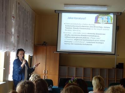 Drugi wykład miał temat: „ Współczesny rynek książki dla dzieci i młodzieży, a preferencje i wybory czytelnicze” . Prelegentką była pani Marta Trojanowska z Miejskiej Biblioteki Publicznej w Radomiu.