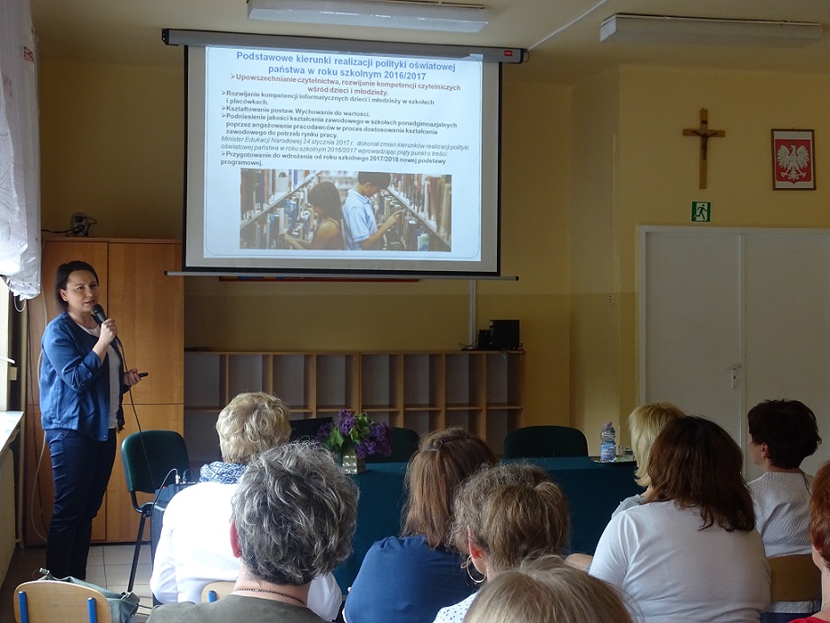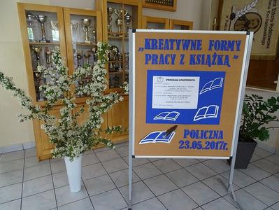 Jednym z priorytetów oświatowych państwa w roku szkolnym 2016/2017 jest upowszechnianie czytelnictwa i rozwijanie kompetencji czytelniczych wśród dzieci i młodzieży. Tego właśnie zagadnienia dotyczyła konferencja „Kreatywne formy pracy z książką” zorganizowana wspólnie przez MSCDN Wydział w Radomiu oraz Zespół Placówek Oświatowych Policzna, która odbyła się 23 maja 2017r. w szkole w Policznie. Na konferencji gościliśmy Wójta Gminy Policzna Tomasza Adamca, Marię Jaskot - Dyrektora Muzeum im. J. Kochanowskiego w Policznie, Justynę Mierzejewską-Figura – Dyrektora Zespołu Szkolno-Przedszkolnego w Czarnolesie, Martę Dąbrowską – podinspektora do spraw oświaty w Gminie Policzna, doradców metodycznych z MSCDN panie: Hannę Habera, Izę Warchoł, Marią Pęczek, Dyrektora Gminnej Biblioteki Publicznej w Policznie –Małgorzatę Baran, przewodniczącą Rady Rodziców PG – Anetę Karcz. Na listę naszych gości wpisali się także nauczyciele i bibliotekarze z zaprzyjaźnionych szkół i bibliotek oraz rodzice naszych wychowanków. Konferencję otworzyła Dorota Maciejczyk – doradca metodyczny MSCDN w Radomiu i jednocześnie nauczyciel w szkole w Policznie, a prelegentów i wszystkich gości powitała ciepło i serdecznie dyrektor ZPO Policzna - Jolanta Kalinowska.