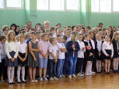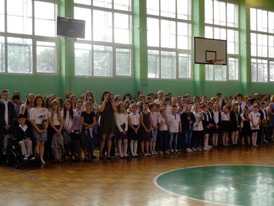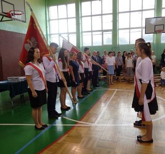 Poranek 23 czerwca przywitał nas chłodem i deszczem, ale ochłodzenie było na szczęście tylko atmosferyczne. Na sali gimnastycznej było aż nadto gorąco. Tuż po godzinie 9 przy dźwiękach Hymnu Państwowego i w obecności Pocztów Sztandarowych rozpoczęło się uroczyste zakończenie roku szkolnego 2016/2017.