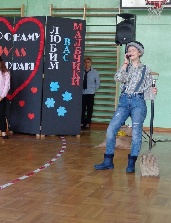 Każdy z nas lubi być obdarowywany. O ile dziewczynkom, kobietom teoretycznie łatwiej coś kupić, to pojawia się problem, co można podarować kolegom? Tyle ile jest pań w szkole i dziewcząt tyle było pomysłów i każda z nas przyniosła coś ciekawego i oryginalnego dla swoich kolegów np. słoiczek grzybków, słodycze, samochodziki, rękawice robocze, maszynki do golenia i tak można by było wyliczać. Wszystkie prezenty zostały wrzucone do worków, z których każdy pan i uczeń osobiście losował dla siebie upominek – jak się okazało wywołało to wśród wszystkich zgromadzonych na sali bardzo dużo radości i śmiechu.