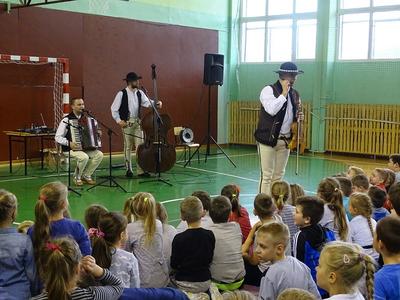 Podczas koncertu artyści nie tylko prezentowali góralskie melodie, ale również zapoznawali uczniów z charakterystycznymi elementami stroju oraz instrumentami góralskimi. W trakcie występu uczniowie mogli wraz z muzykami zaśpiewać znane piosenki a nawet zatańczyć. HEJ!