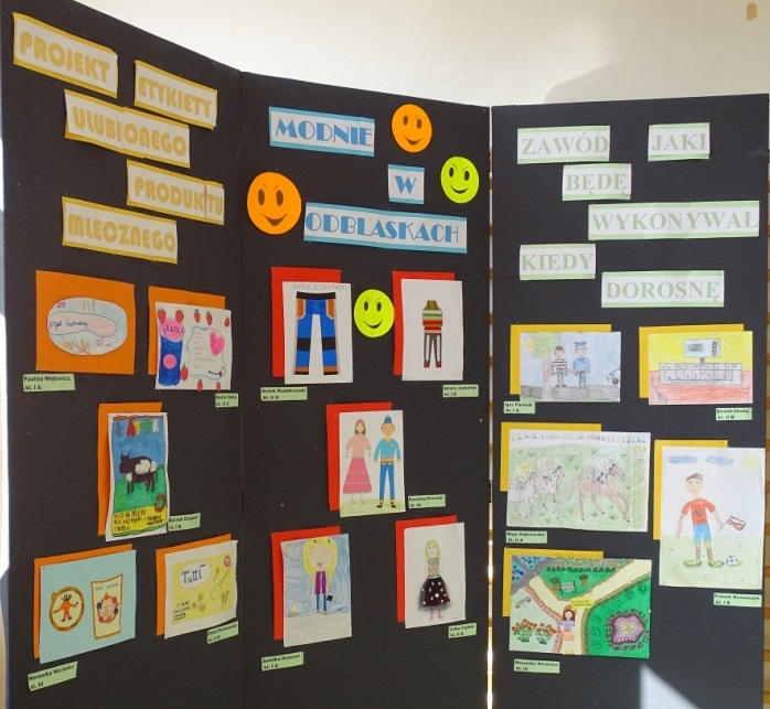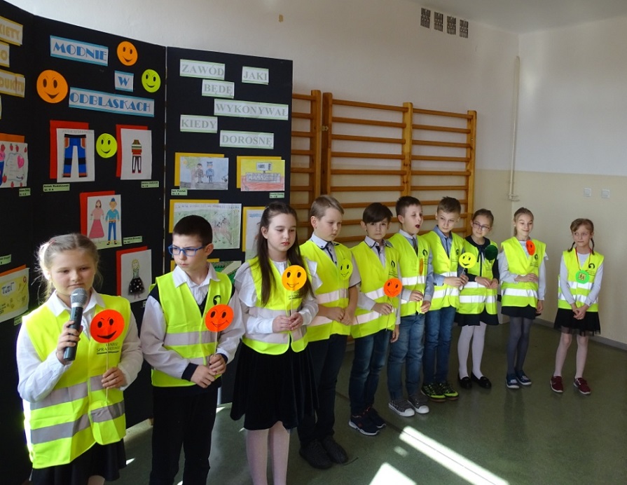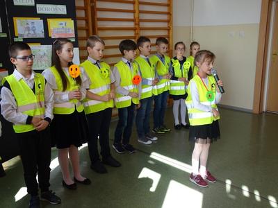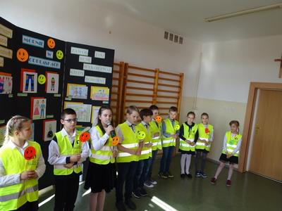 W ramach programu -,,Bezpieczeństwo na drodze, w szkole, w domu i życiu codziennym” dzieci odbyły cykl zajęć, podczas których uczyły się zasad poruszania po drodze oraz bezpiecznego zachowania w szkole i w domu. Uczniowie uczestniczyli w spotkaniu z przedstawicielami Policji, a także odbyli wycieczki na ulicę. W ramach akcji ,,Odblaski-dziecko bezpieczne na drodze” przeprowadzone zostały zajęcia - ,,Niestraszki odblaski”, podczas których uczniowie nauczyli się jak ważne dla ich bezpieczeństwa jest noszenia kamizelek i elementów odblaskowych. Ważnym zadaniem był konkurs plastyczny - ,,Modnie w odblaskach”. Dzieci projektowały ubiory zawierające elementy odblaskowe. W konkursie tym wyróżnione zostały prace następujących uczniów: