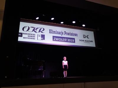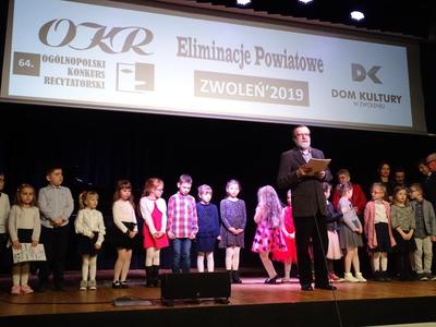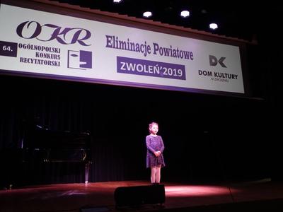 21 marca 2019r. w Domu Kultury w Zwoleniu odbyły się powiatowe eliminacje w ramach 64. Ogólnopolskiego Konkursu Recytatorskiego oraz 36. Małego Konkursu Recytatorskiego organizowanego przez Towarzystwo Kultury Teatralnej Oddział Okręgowy w Radomiu.