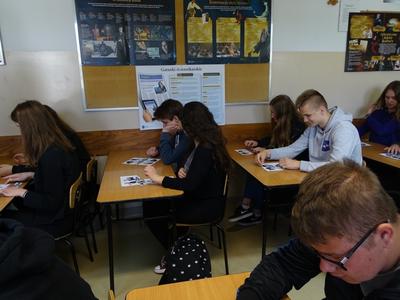 Młodzież klas trzecich gimnazjum i klasy ósmej 9 maja 2019 r. wzięła udział w warsztatach z treningu pamięci i koncentracji, przeprowadzonych przez grupa uczennic z Zespołu Szkół nr 3 w Puławach. Zaproponowane ćwiczenia wymagały od uczniów skupienia, zaangażowania, indywidualnego ale też grupowego działania.