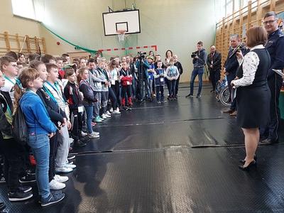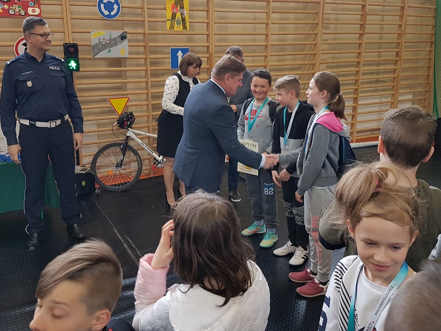 13 maja 2019 r. w Publicznej Szkole Podstawowej nr 5 w Radomiu odbył się pierwszy Międzypowiatowy Turniej Bezpieczeństwa w Ruchu Drogowym dla szkół podstawowych „Bezpieczni na drodze”. W rywalizacji wzięło udział 22 drużyny ze szkół podstawowych z regionu radomskiego. Zawodnicy rozwiązywali test wiedzy z przepisów ruchu drogowego, ustalali kolejność przejazdu na skrzyżowaniach oraz wykazywali się umiejętnością kierowania rowerem na torze przeszkód. Naszą szkołę reprezentowała drużyna w składzie: Ola Drewa – kl. 5b, Maciej Sidorczuk- kl.5a, Mikołaj Gregorczyk - kl.6. W klasyfikacji indywidualnej triumfował Mikołaj i otrzymał główną nagrodę - rower. W klasyfikacji drużynowej wygraliśmy wycieczkę do Sejmu Rzeczypospolitej Polskiej.