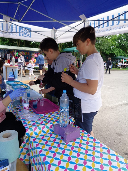 Rodzice zadbali, aby z okazji Dnia Dziecka na ich pociechy czekały też inne atrakcje. Był dostępny dla wszystkich plac zabaw – zjeżdżalnie i trampolina. Długie kolejki najmłodszych czekały na letni makijaż, kolorowe warkoczyki i balonowe zabawki przygotowywane przez wiele godzin przez niezwykle cierpliwe mamy. Wszystkim uczniom podobały się zorganizowane w namiocie naukowym zajęcia, pozwalające poprzez zabawę poznać prawa fizyki i chemii.
