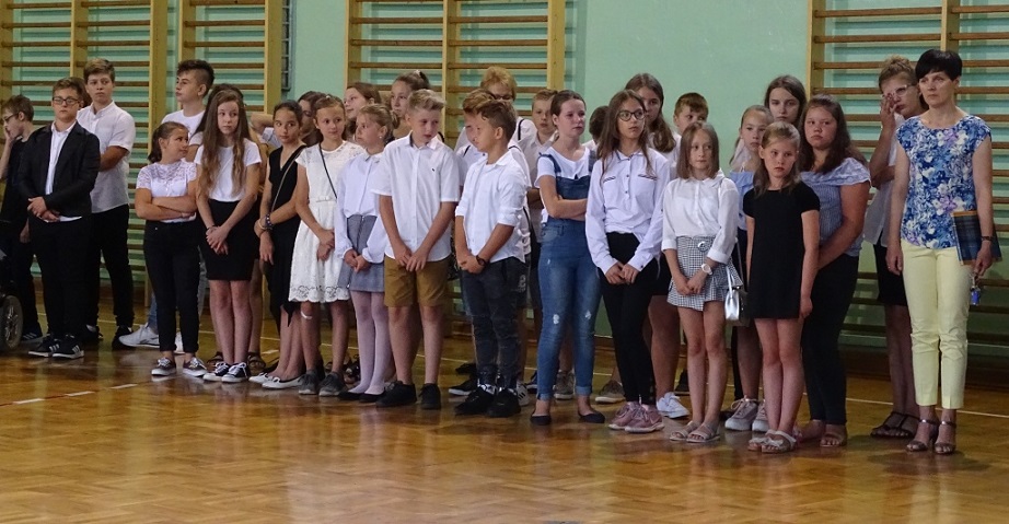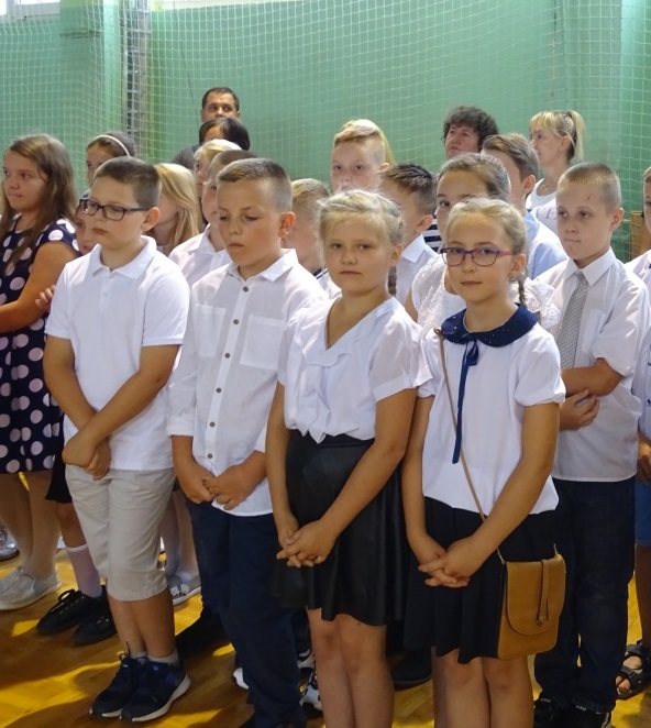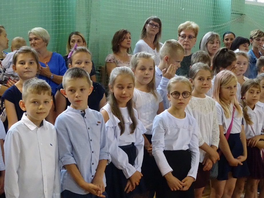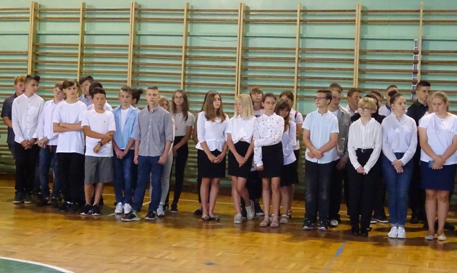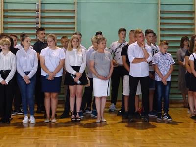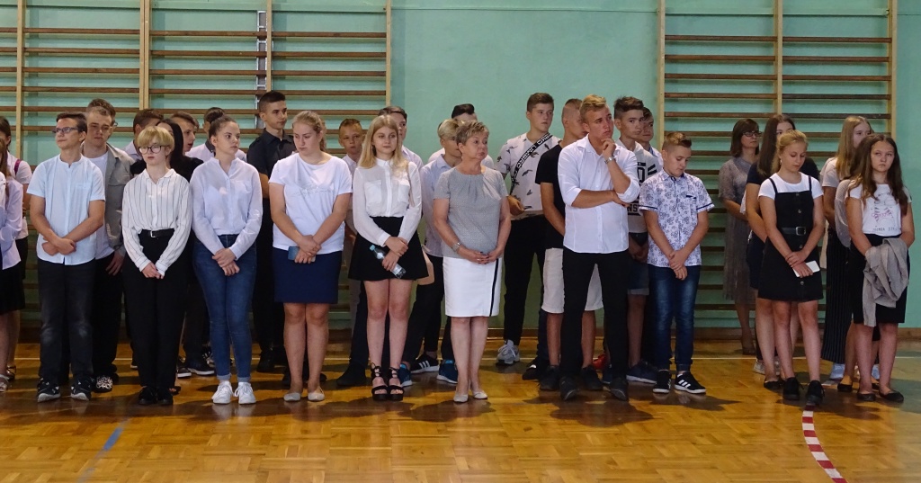2 września 2019r. punktualnie o godzinie 1000 cała społeczność szkolna zebrała się w sali gimnastycznej, gdzie wszystkich zebranych po wakacyjnej przerwie powitała pani dyrektor Jolanta Kalinowska.