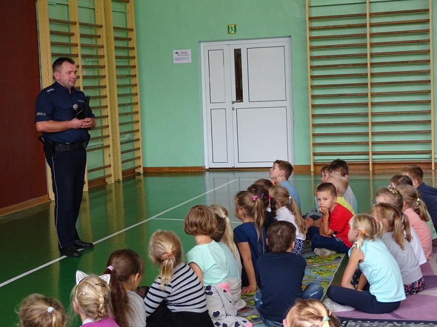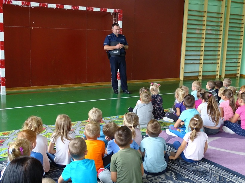 10 września 2019 r. uczniowie naszej szkoły uczestniczyli w spotkaniu z policjantem z Komendy Powiatowej Policji w Zwoleniu. Spotkanie miało charakter profilaktyczny i dotyczyło zasad bezpiecznego zachowania się w różnych sytuacjach zagrożenia.