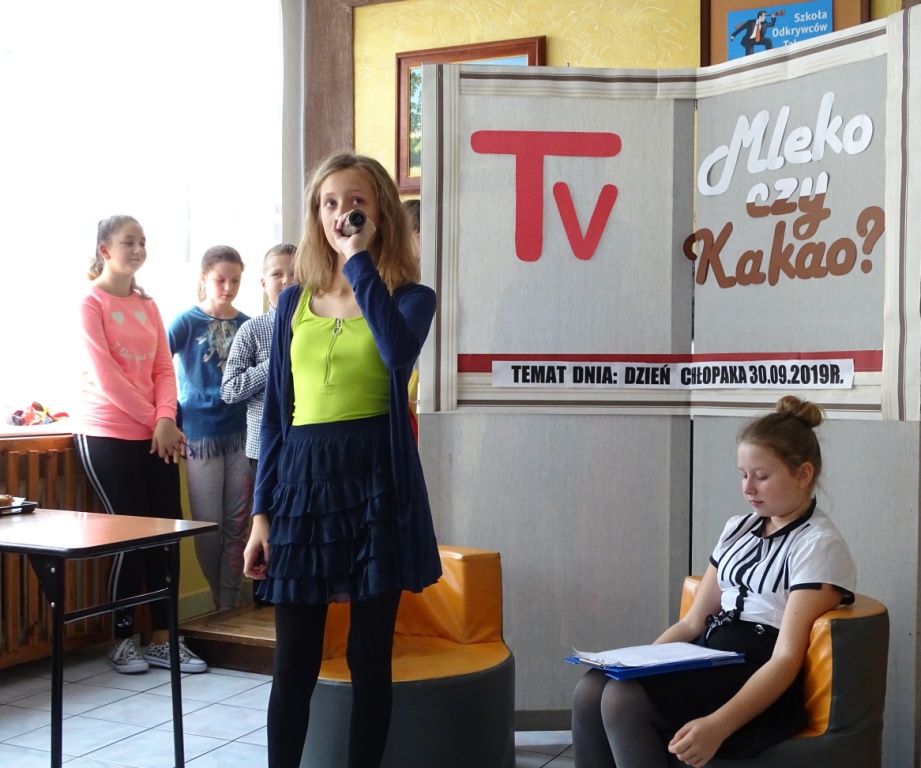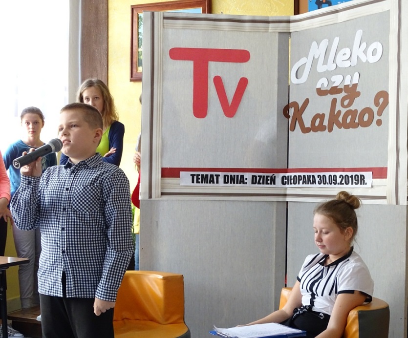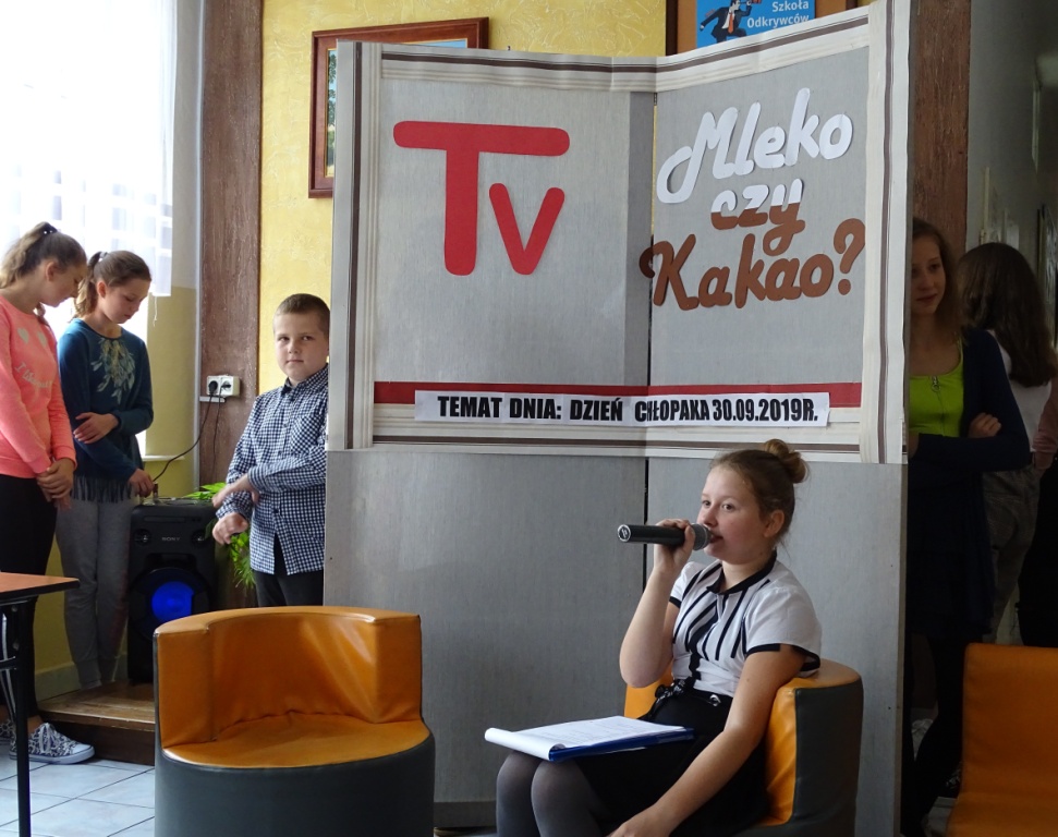 Poniedziałek 30 września był wyjątkowym dniem dla chłopców naszej szkoły. Grupa teatralna zaprezentowała dla uczniów humorystyczny program telewizji śniadaniowej pod hasłem "Mleko czy kakao", a Samorząd Uczniowski obdarował chłopców okolicznościowymi medalami.