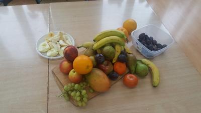 W miesiącu październiku w oddziałach przedszkolnych prowadzone były działania edukacyjne, które miały na celu propagowanie zdrowego żywienia. Dzieci z ciekawością poznawały walory smakowe, dotykowe, węchowe owoców i warzyw oraz ich rolę w codziennej diecie. W ramach zajęć dzieci wykonywały prace plastyczne, poznawały piosenki, wiersze, rozwiązywały zagadki.