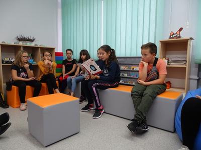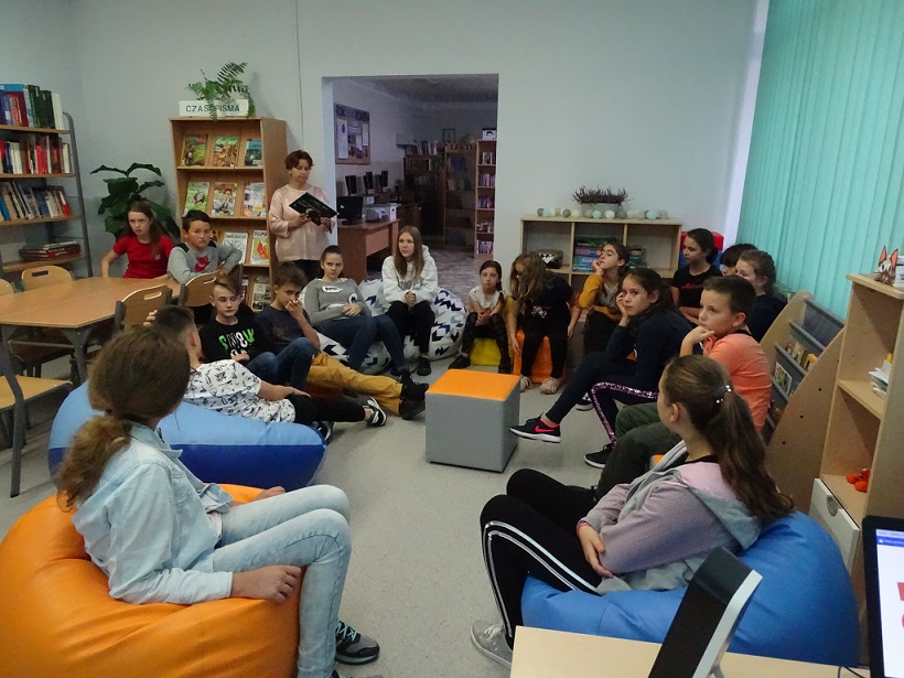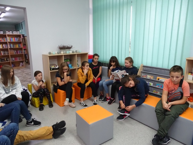 Nasza NOC BIBLIOTEK miała miejsce w piątkowe popołudnie 4 października i trwała od godz. 1700 do 2000. W spotkaniu wzięła udział grupa chętnych uczniów z klas od piątej do ósmej. Tuż po godzinie 1700 i krótkim powitaniu przez organizatorów zaczęła się wieczorna przygoda z czytaniem.