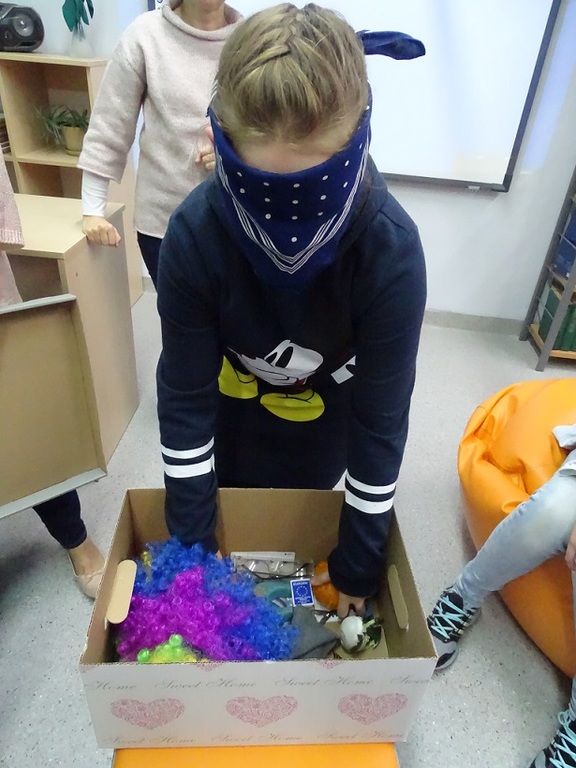 Jako pierwsze zaprezentowały się uczennice klasy Va, Milena i Antonina, które przeczytały fragmenty książki pt: „Niezwykła historia Sebastiana Van Pirka”. Następnie na uczestników czekała „Magiczna skrzynia”, w której znajdowały się przeróżne przedmioty. Zadanie polegało na wylosowaniu jednego przedmiotu i skojarzenie z nim tytułu książki lub bohatera literackiego. Zabawa była fantastyczna, a skojarzenia literackie bardzo udane. W dalszej części wieczoru uczniowie bawili się układanki wyrazowe, poszukiwali zagubionych tytułów książek, słuchali wzruszającej opowieści pt: „Żyrafa na rowerze” zaprezentowanej za pomocą Teatru Kamishibai. Nie zabrakło również zabaw ruchowych. Było przeciąganie liny pomiędzy miłośnikami dwóch różnych gatunków literackich, walka o pierwszeństwo w zdobyciu ulubionej książki. W przerwach uczestnicy mogli posilić się w Kawiarence Literackiej. W programie było także oglądanie filmu pt:"Ptyś i Bill" - na podstawie komiksu "Ptyś i Bill" (wydawnictwo Egmont) w reżyserii A. Charolta i F. Magniera oraz malowanie twarzy. Przez cały wieczór uczestników nie opuszczał dobry humory o czym mogły przekonać się nasze panie dyrektorki, które odwiedziły miłośników nocnego czytania.