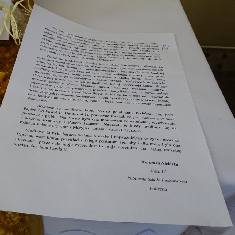 Pod takim hasłem został zorganizowany przez Sanktuarium NMP Królowej Różańca Świętego w Wysokim Kole międzyszkolny konkurs różańcowy. Każda szkoła mogła zgłosić do konkursu po jednej pracy z poszczególnych kategorii wiekowych:
