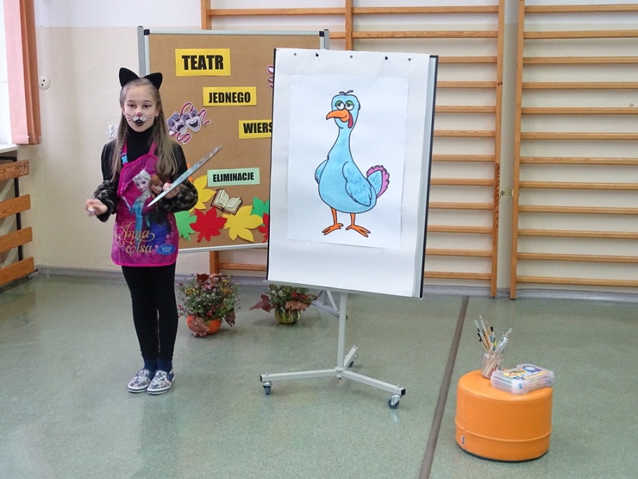 W dniu 8 listopada 2019r. odbyły się w naszej szkole eliminacje do konkursu w kategorii - klasy I-III. Wszystkie dzieci biorące udział w eliminacjach starały się zaprezentować jak najpiękniej i zachwycić swoim występem zarówno publiczność jak i jury. Zgodnie z głównym przesłaniem tego konkursu dbały nie tylko o czystość wymowy i poprawną dykcję, ale również (a może przede wszystkim) o ruch sceniczny, odpowiednie gesty i mimikę oraz umiejętne wykorzystanie rekwizytów. Jury w składzie: pani Anna Nowak- nauczyciel bibliotekarz i pani Marta Figura- logopeda postanowiło przyznać zwycięstwo w eliminacjach następującym uczniom: