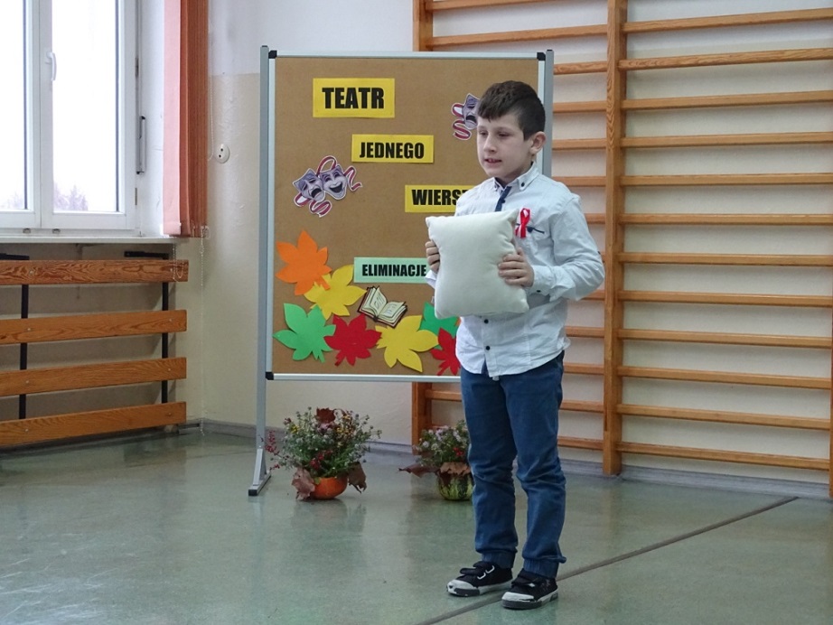 „Turniej Jednego Wiersza” Pod taką nazwą odbędzie się 21 listopada 2019r. konkurs organizowany przez DK w Zwoleniu, a do którego od ponad miesiąca przygotowywali się uczniowie naszej szkoły i przedszkola. Jury będzie oceniać występy uczestników w trzech kategoriach wiekowych - przedszkole i oddziały 0, klasy I-III oraz klasy I-VIII; a każda placówka może zgłosić do udziału w konkursie pięciu uczestników w danej kategorii wiekowej.