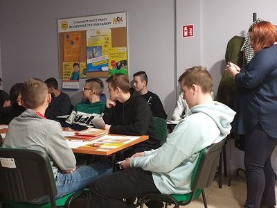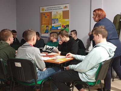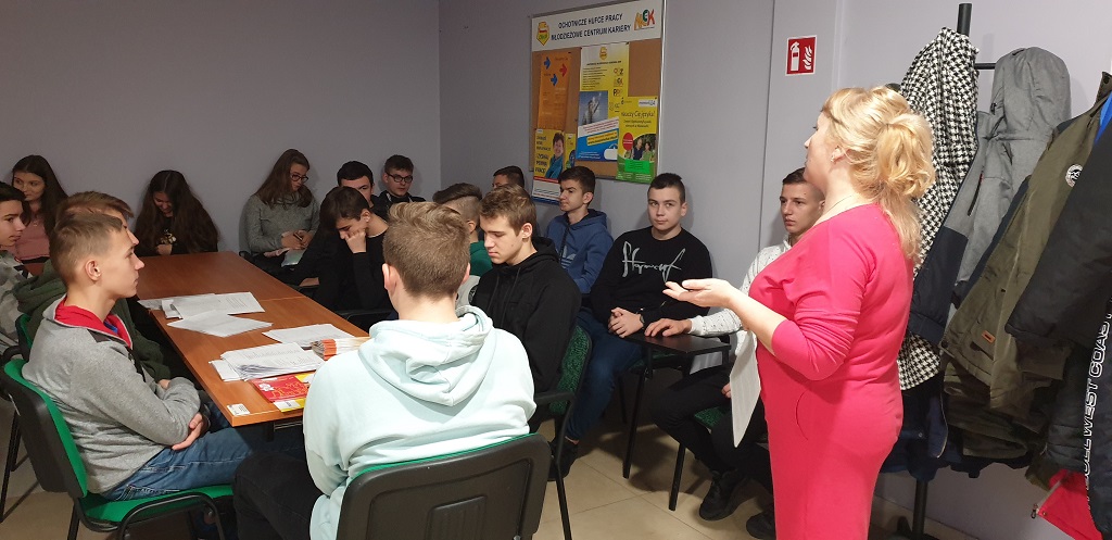 13 listopada 2019 roku uczniowie klasy 8 a i 8 b PSP Policzna pod opieką Olgi Adamiec i Anny Lenart uczestniczyli w warsztatach zawodoznawczych, które odbyły się w Młodzieżowym Centrum Kariery w Zwoleniu. Zostały poprowadzone przez doradców zawodowych: Annę Sekuła i Marcelinę Szarpak. Młodzież aktywnie uczestniczyła zajęciach. Wiedzę, którą otrzymali zapewne wykorzystają w praktyce w momencie wyboru szkoły. Tematyka spotkania przybliżyła uczniom rzeczywistość, która stanie się ich udziałem podczas pierwszych doświadczeń związanych z poszukiwaniem pracy.