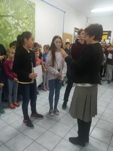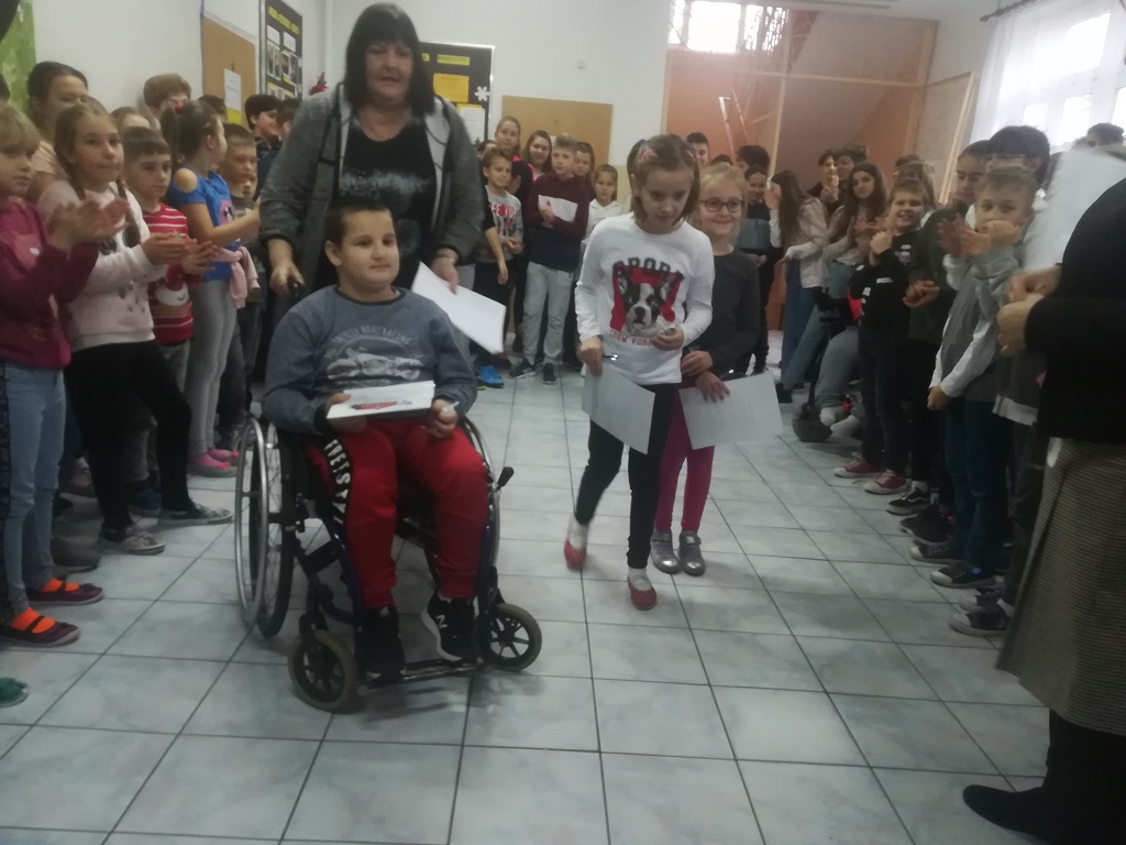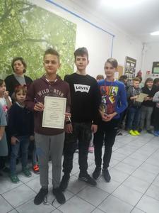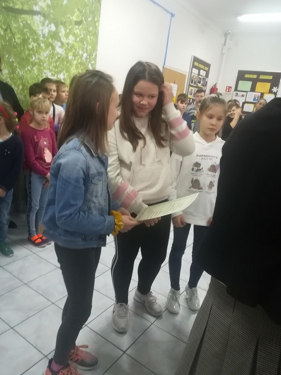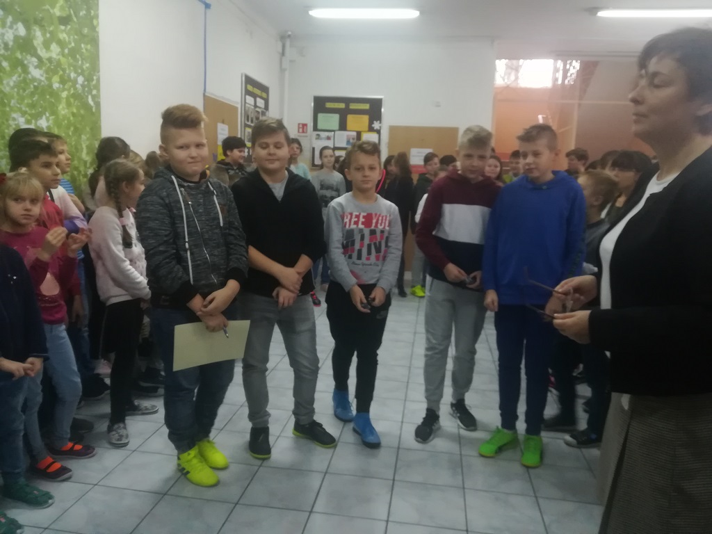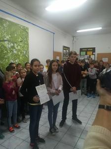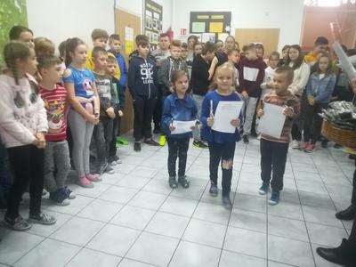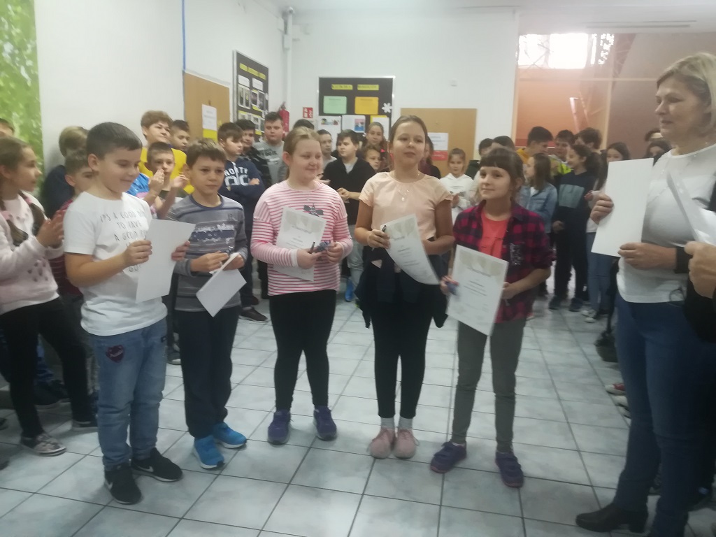 Nagrodzeni uczniowie, oprócz gratulacji i braw, otrzymali pamiątkowe długopisy, dyplomy oraz słodycze. Wszystkim uczestnikom życzymy wielu sukcesów w kolejnych zmaganiach literackich.