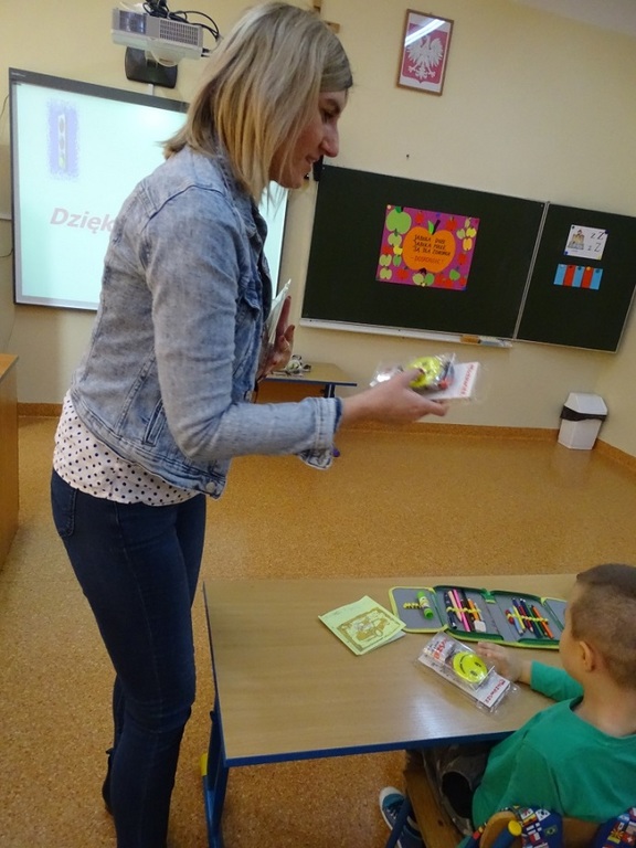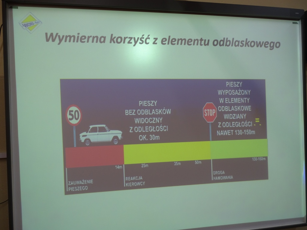 Dnia 30 stycznia 2020r. uczniowie klas pierwszych wzięli udział w spotkaniu z pracownikami Wojewódzkiego Ośrodka Ruchu Drogowego w Radomiu. Ciekawa pogadanka, prezentacja multimedialna, wspólne rozwiązywanie rebusów czy oglądanie króciutkich filmików poglądowych miały na celu przypomnienie zasad bezpiecznego poruszania się po drogach i konieczności troski o bezpieczeństwo własne i innych osób. Dzieci były zainteresowane przekazywanymi treściami i aktywnie uczestniczyły w spotkaniu. Chętnie zgłaszały się do odpowiedzi, podawały przykłady z własnego doświadczenia i zadawały pytania prowadzącym. W ramach akcji "Wyprawka Pierwszoklasisty" każde dziecko otrzymało zestaw elementów odblaskowych, których używanie zwiększa bezpieczeństwo wszystkich uczestników ruchu drogowego.