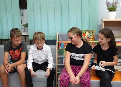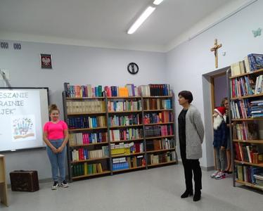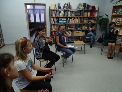 W dalszej części spotkania dwie uczennice z klasy IV; Paulinka i Kasia przeczytały fragmenty swoich ulubionych książek. Były to: „ Magiczne drzewo” i „ Akademia Pana Kleksa”. Wiele przyjemności sprawiło nam wszystkim wysłuchanie wierszy autorstwa uczniów klasy VI; Antosi, Michasi i Oskara o ich ulubionych zwierzakach – psach. Tematyka wierszy świetnie wpisała się w motyw filmu „ Jakub, Mimi i gadające psy”, którego fragmenty obejrzeliśmy na zakończenie naszego spotkania. Pani Beata Wólczyńska opiekunka Szkolnego Koła Teatralnego przeczytała nam wszystkim hymn akcji autorstwa Jacka Cygana „Klimat na czytanie” i wiersz Doroty Masłowskiej z książki „Psikusy” .