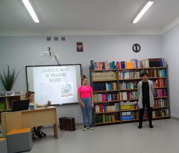 Nasza szkolna Noc Bibliotek odbyła się w piątek 9 października w godz. 1700- 2000. Tuż po godzinie 1700 i krótkim powitaniu przez organizatorów rozpoczęła się wieczorna przygoda z czytaniem. Wzięli w niej udział uczniowie należący do Szkolnego Koła Teatralnego, którzy specjalnie na tę okazję przygotowali przedstawienie teatralne pod tytułem: „ Zamieszanie w krainie bajek”. Ponieważ nie będą mogli go zaprezentować szerszej szkolnej publiczności spektakl sfilmowaliśmy i zamieściliśmy na szkolnej stronie internetowej.