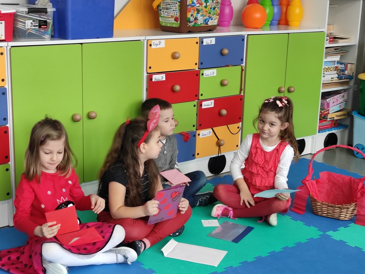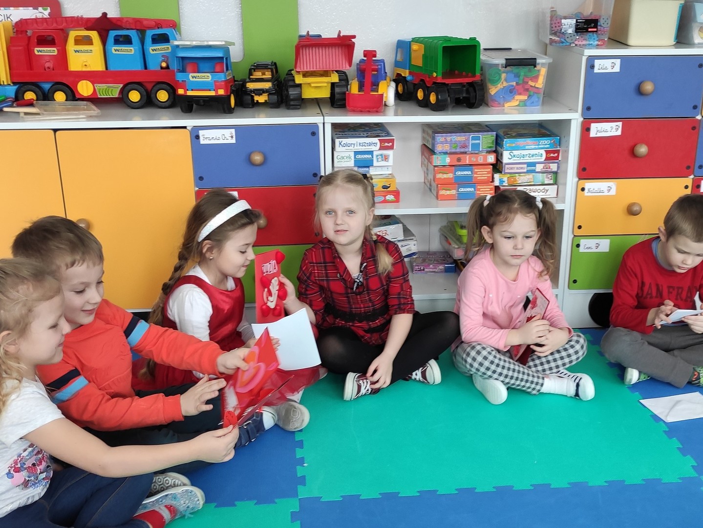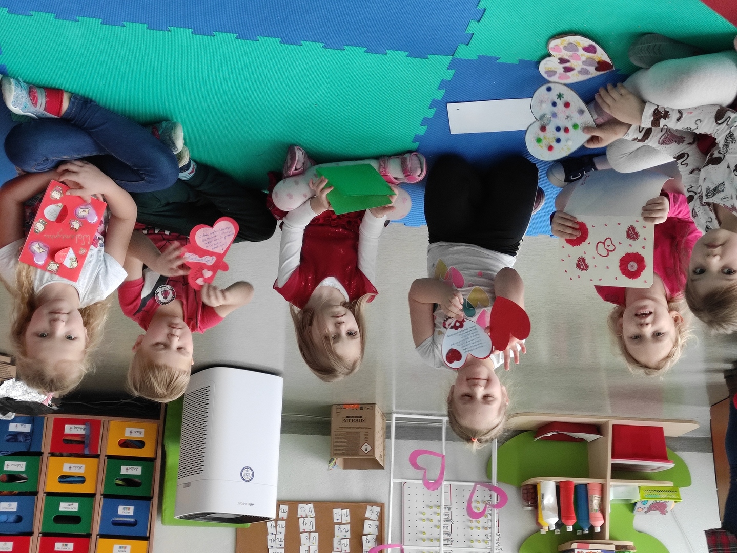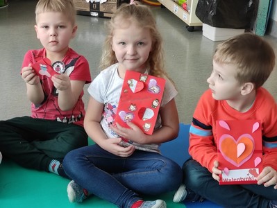 Ten dzień był prawdziwym, czerwonym dniem miłości, przyjaźni i wzajemnego szacunku. Przedszkolaki uczestniczyły w tematycznych zabawach dydaktycznych, ruchowych oraz plastycznych. Radosnej atmosferze towarzyszyły walentynkowe akcenty: czerwone stroje, serduszka i walentynkowa fotobudka. Wspaniałą niespodzianką były nadesłane przez rodziców walentynkowe kartki dla ukochanych pociech. Nie zabrakło oczywiście sercowych kolorowanek, spontanicznych emocji oraz pozytywnych uczuć. Na koniec tego magicznego dnia każde dziecko zabrało do domu laurkę własnoręcznie zrobioną, którą podarowało tym, których kocha najbardziej.