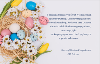 ŻYCZENIA WIELKANOCNE Zdjęcia Zobacz również opieka świetlicowa dla uczniów klas I- III w... Organizacji stacjonarnej opieki przedszkolnej... INFORMACJA ŻYCZENIA WIELKANOCNE ŻYCZENIA Konkurs na Kartkę Wielkanocną „SERCEM MALOWANE” 31 marca 2021 Aktualności Wydrukuj Udostępnij Wyświetlono: 344